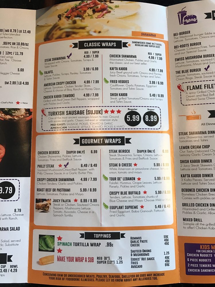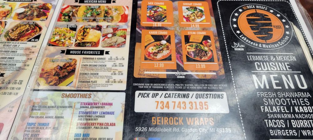 Introducing Beirock Wraps, a culinary gem nestled in Garden City, MI. Specializing in American-style wraps, this casual eatery offers an array of delicious options, including vegetarian choices that cater to diverse palates. The menu highlights include their renowned chicken shawarma, celebrated for its flavor and tenderness, and the robust steak shawarma which promises an explosion of taste in every bite.